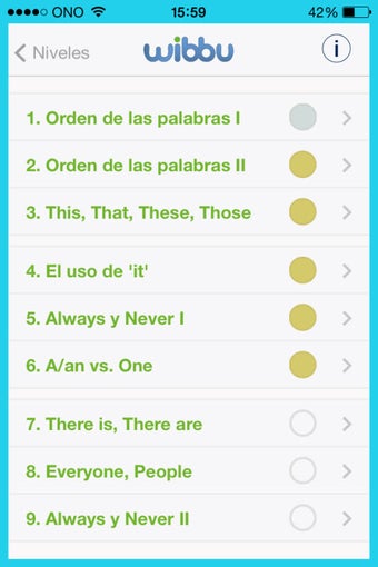 Organizado en niveles y temarios concretos, Wibbu English te guiará paso a paso para aprender inglés con tu móvil.