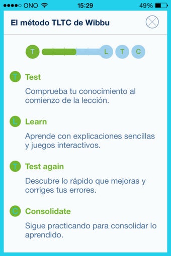 El método de Wibbu English recibe la sigla TLTC: Test, Learn, Test again y Consolidate. Es decir, responde a una pregunta para ver tu nivel, aprender cómo se utiliza la palabra en cuestión, vuelve a probar respondiendo a distintas preguntas relacionadas con el mismo concepto y practica hasta que hayas aprendido la lección y no cometas errores.